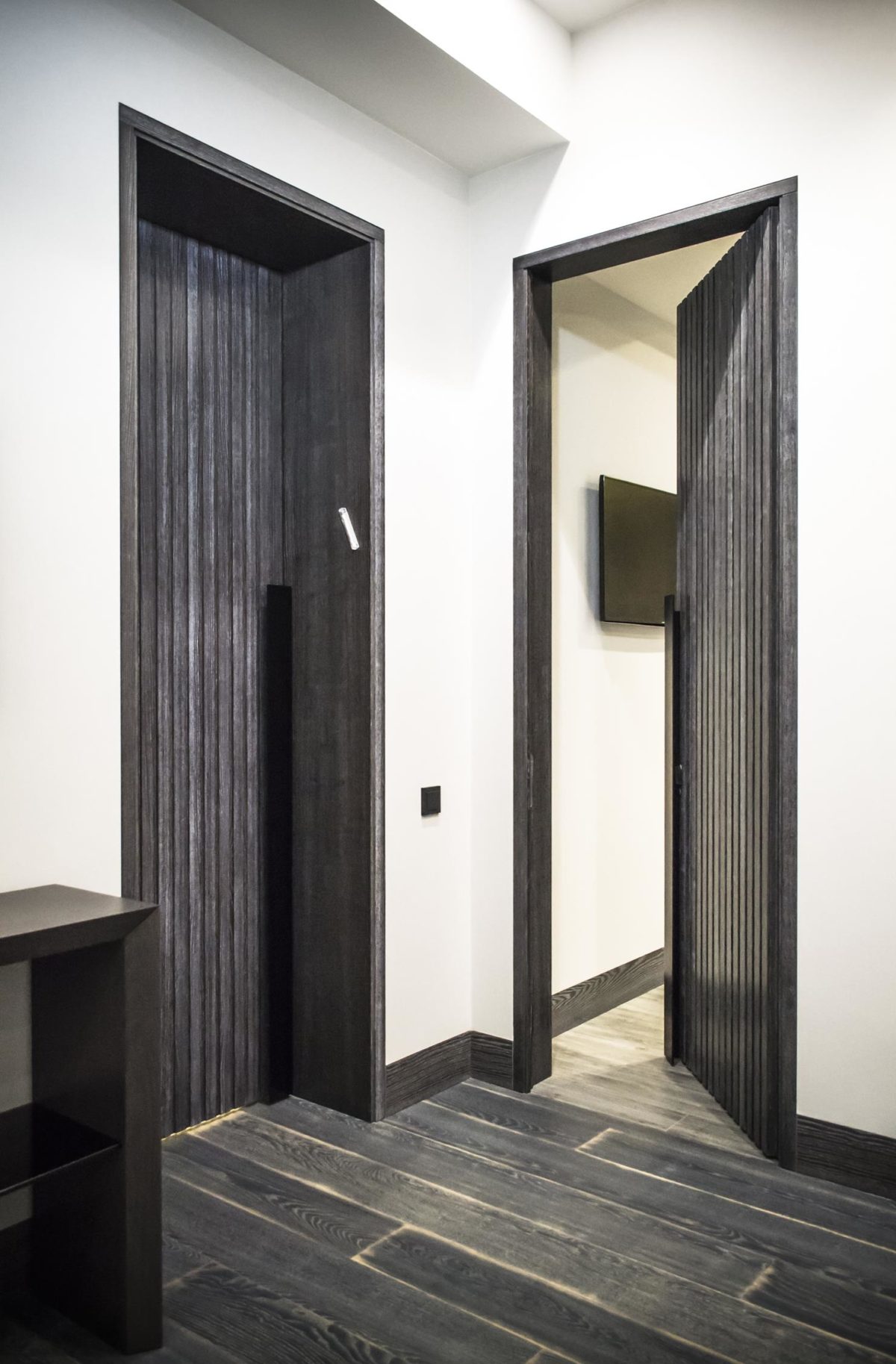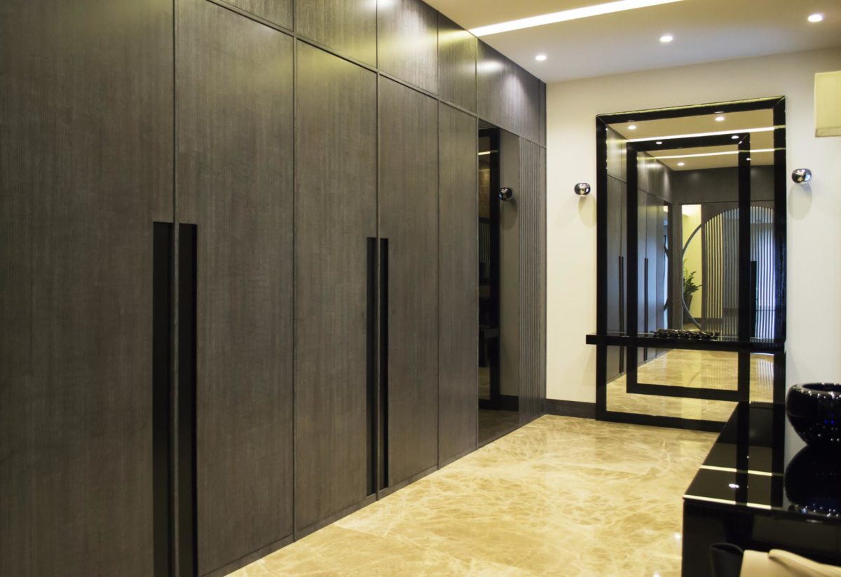 Компания Qualita изготавливала для данного проекта межкомнатные двери, стеновые панели,кухню, гардеробные, мебель.