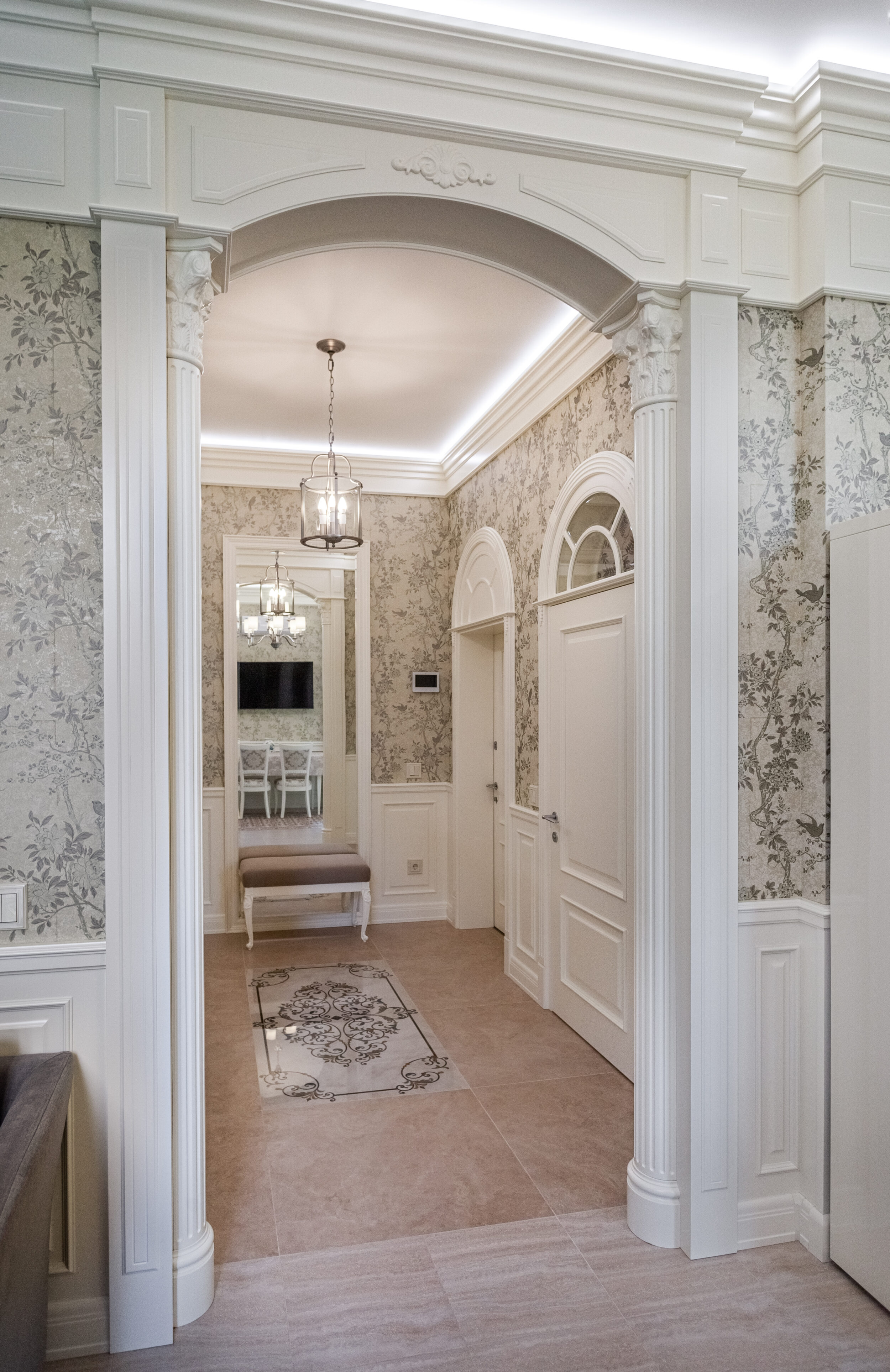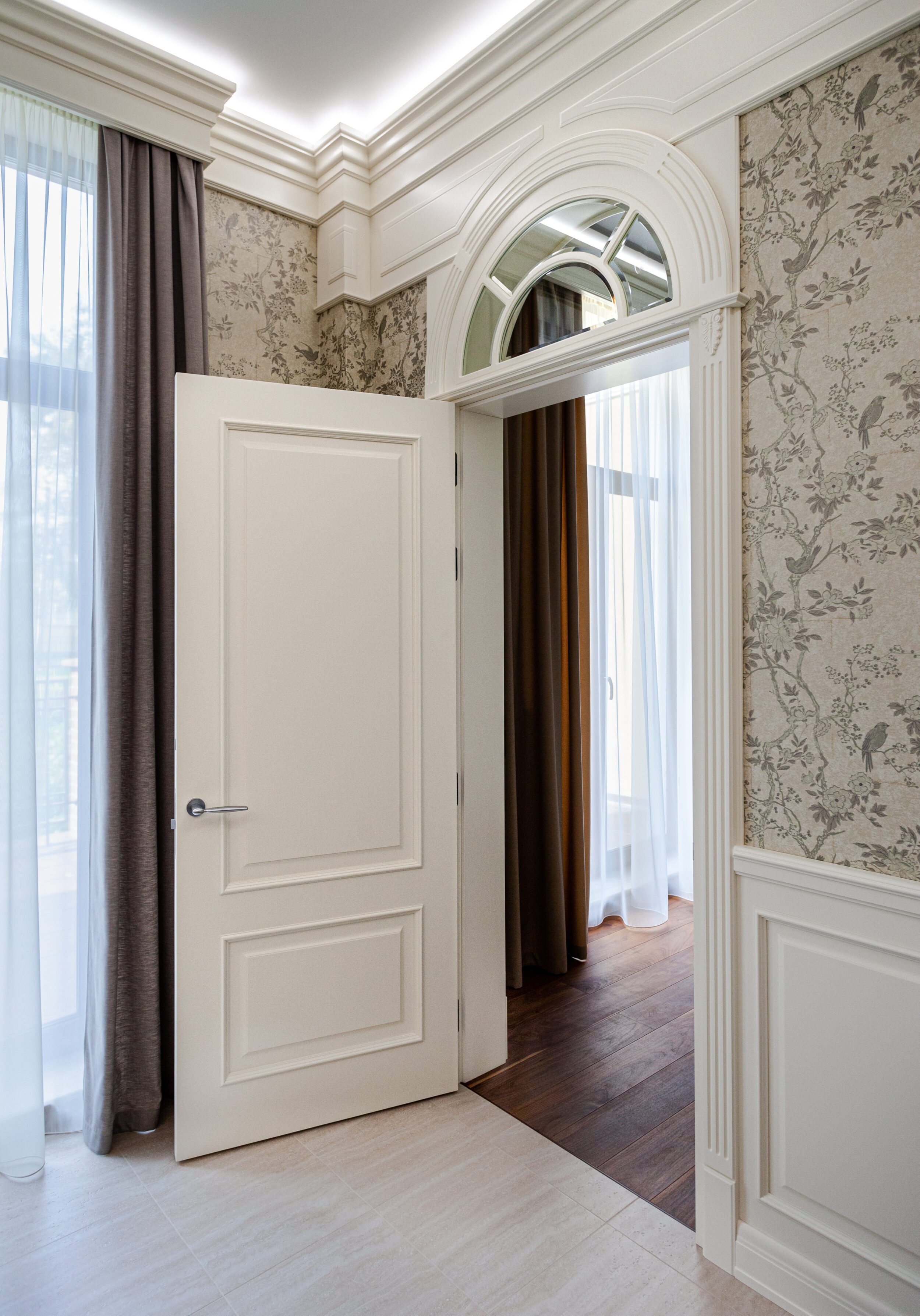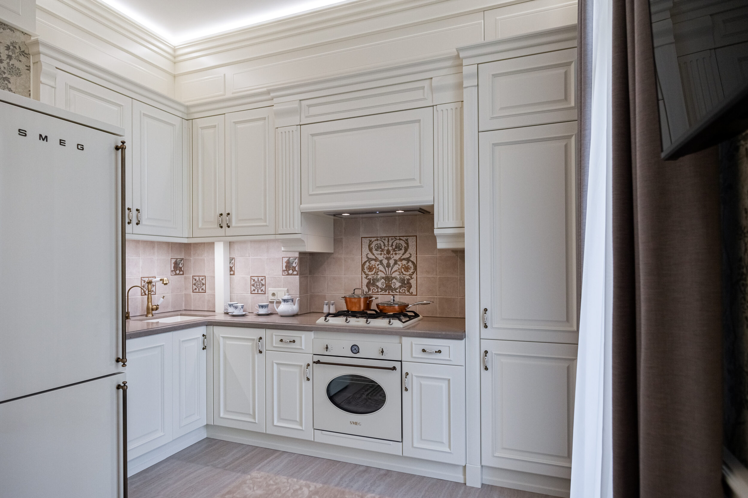 Апартаменты, г. Харьков, компания Qualita изготавливала для данного проекта межкомнатные двери, мебель, кухню, стеновые панели, потолочный фриз.