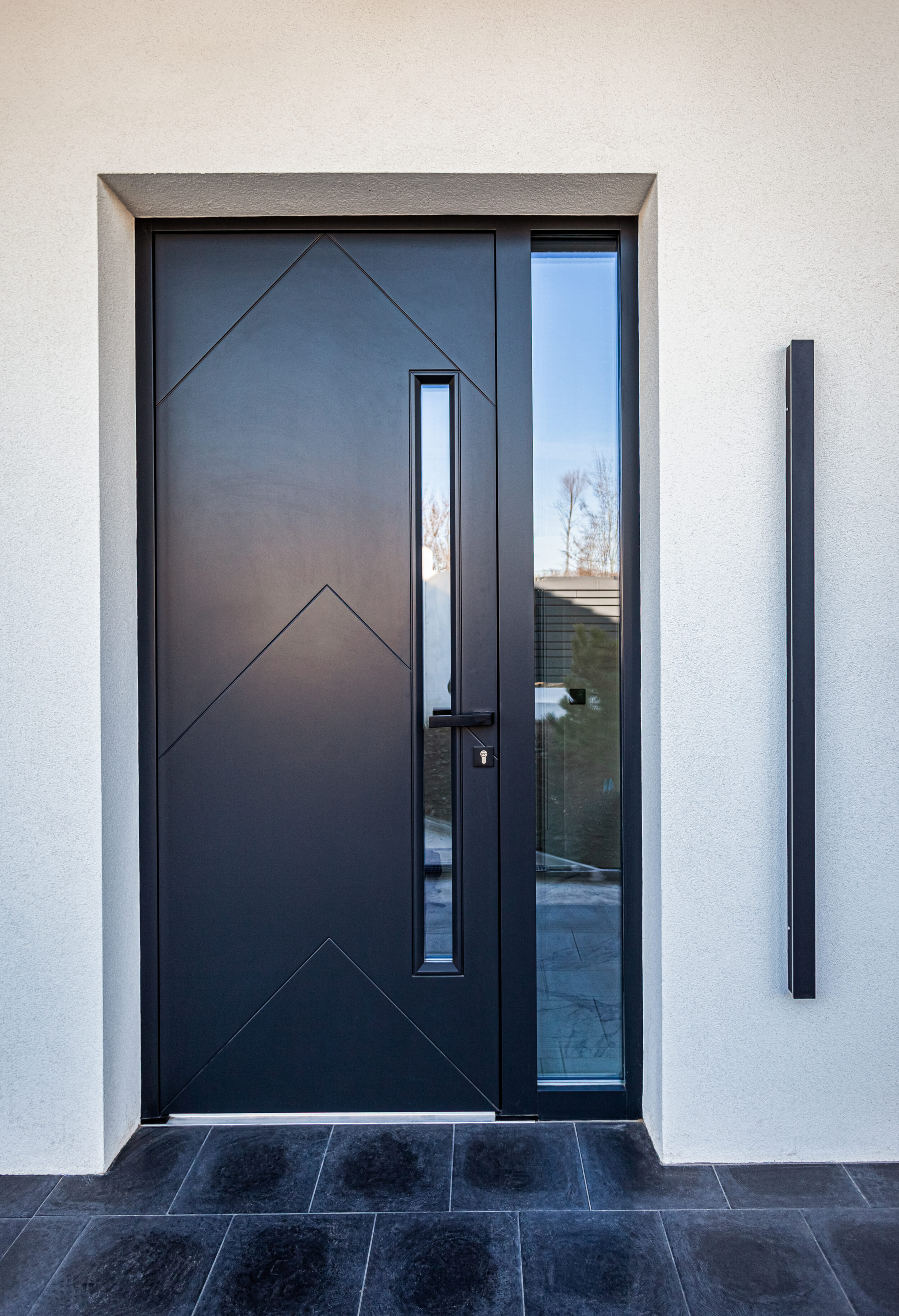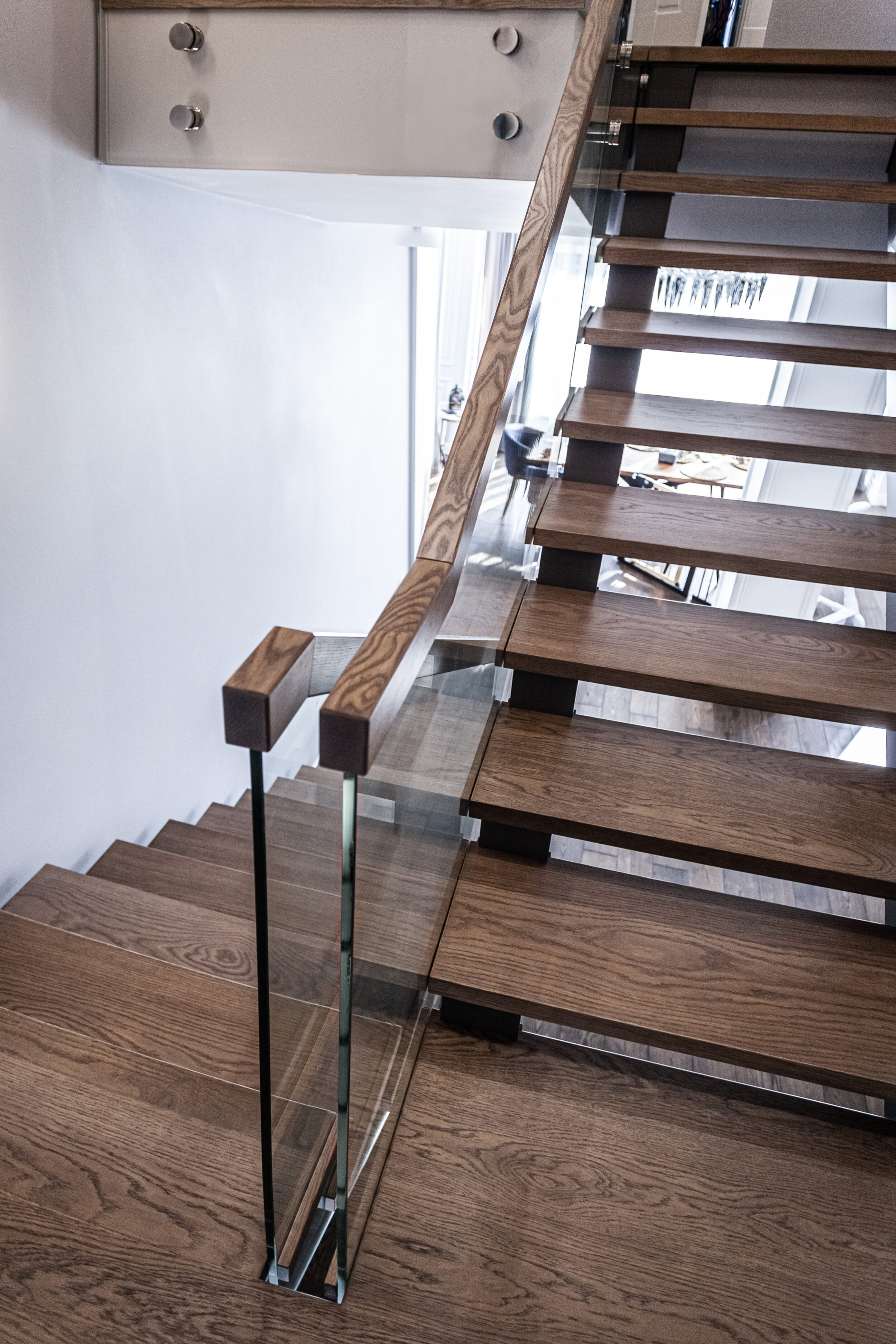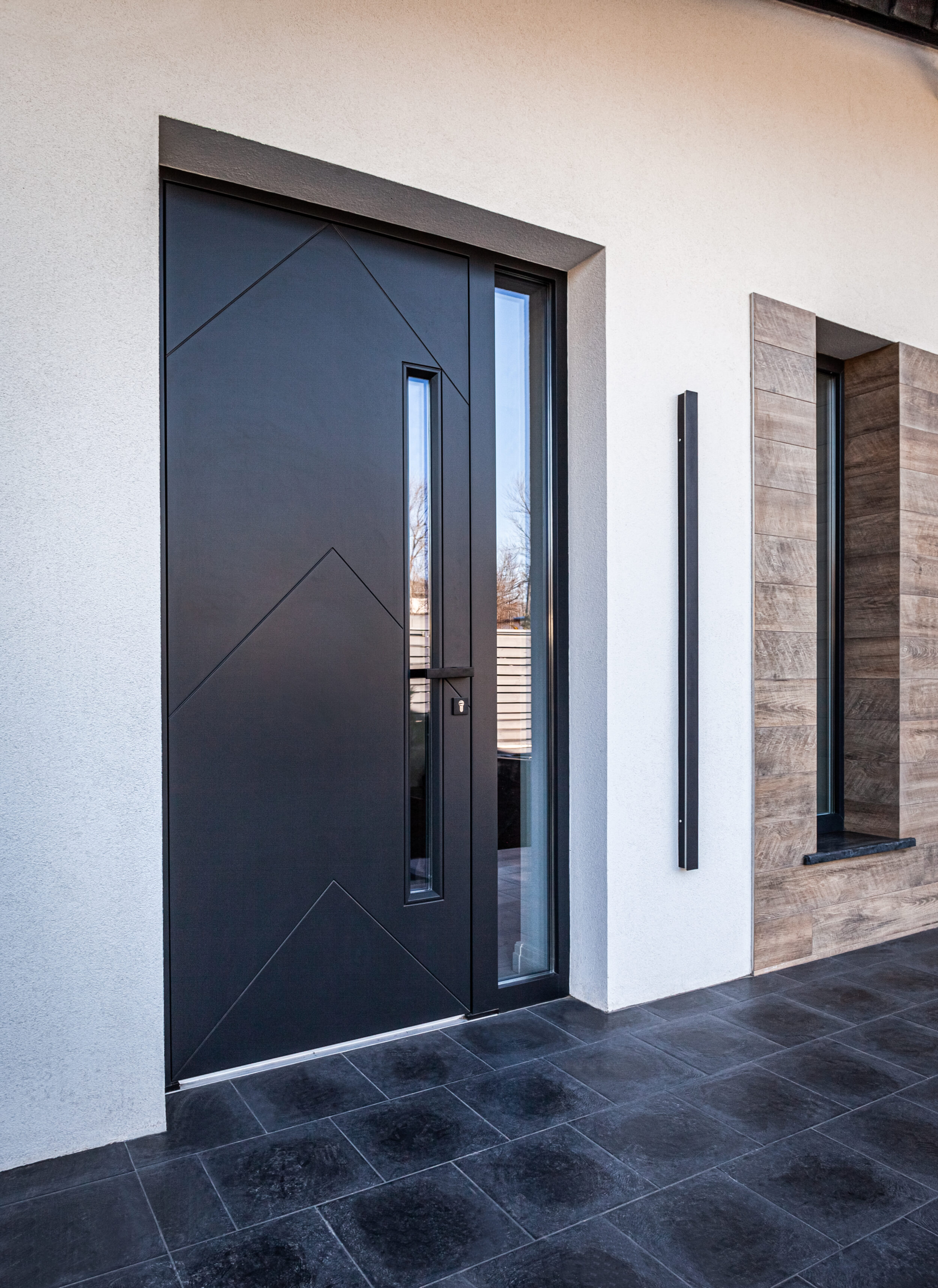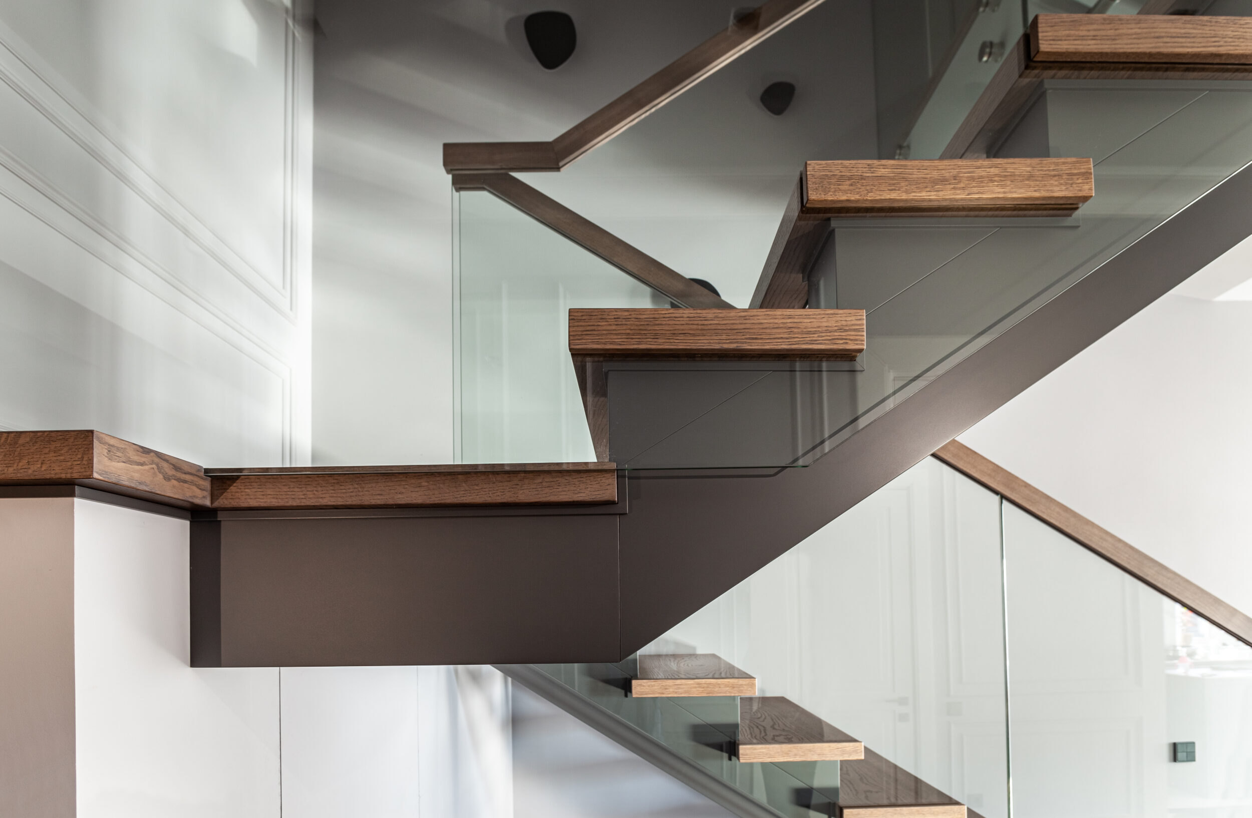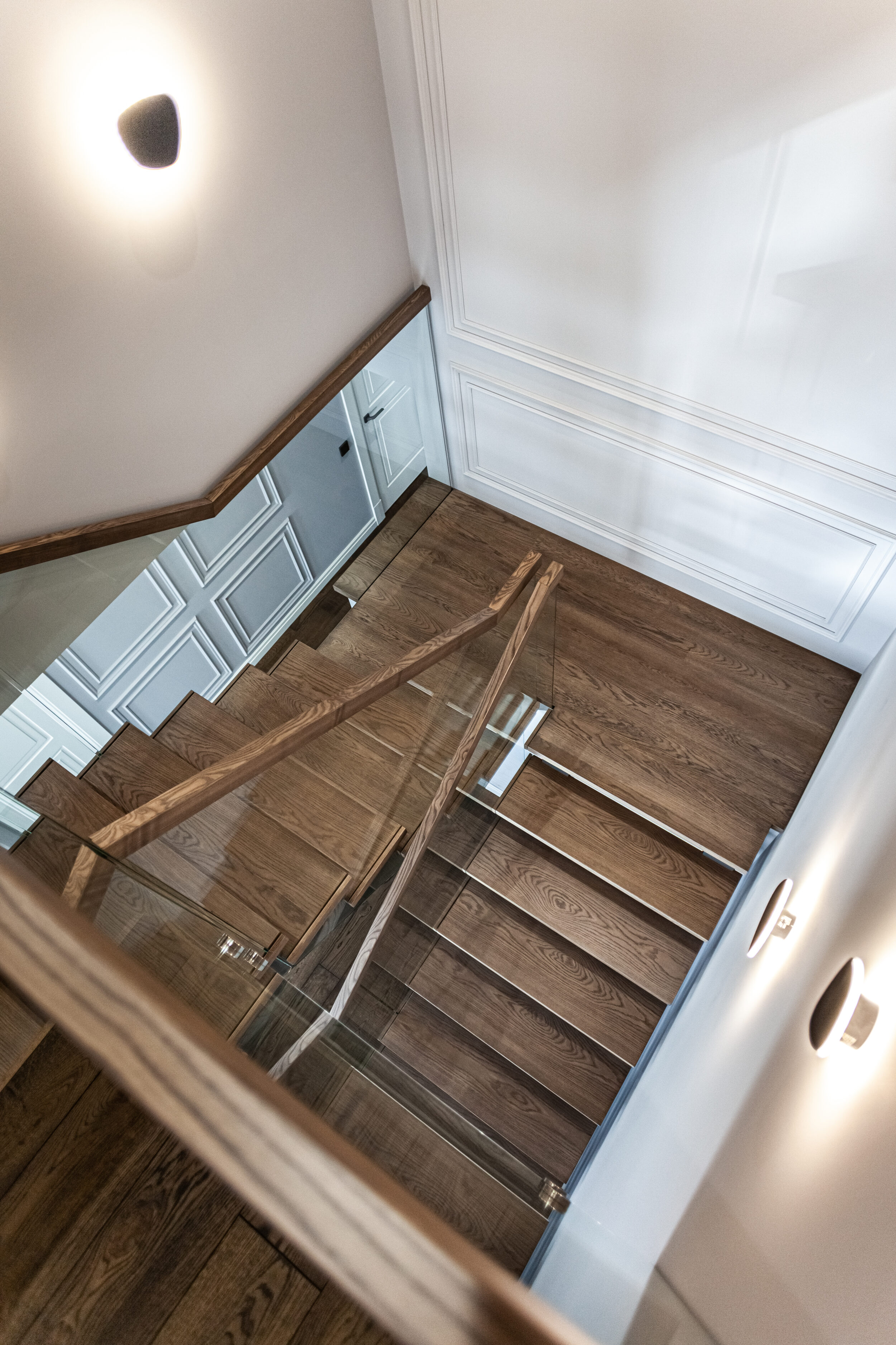 Для данного проекта Компания Qualita изготавливала входной блок, межкомнатные двери, лестницу, плинтус.